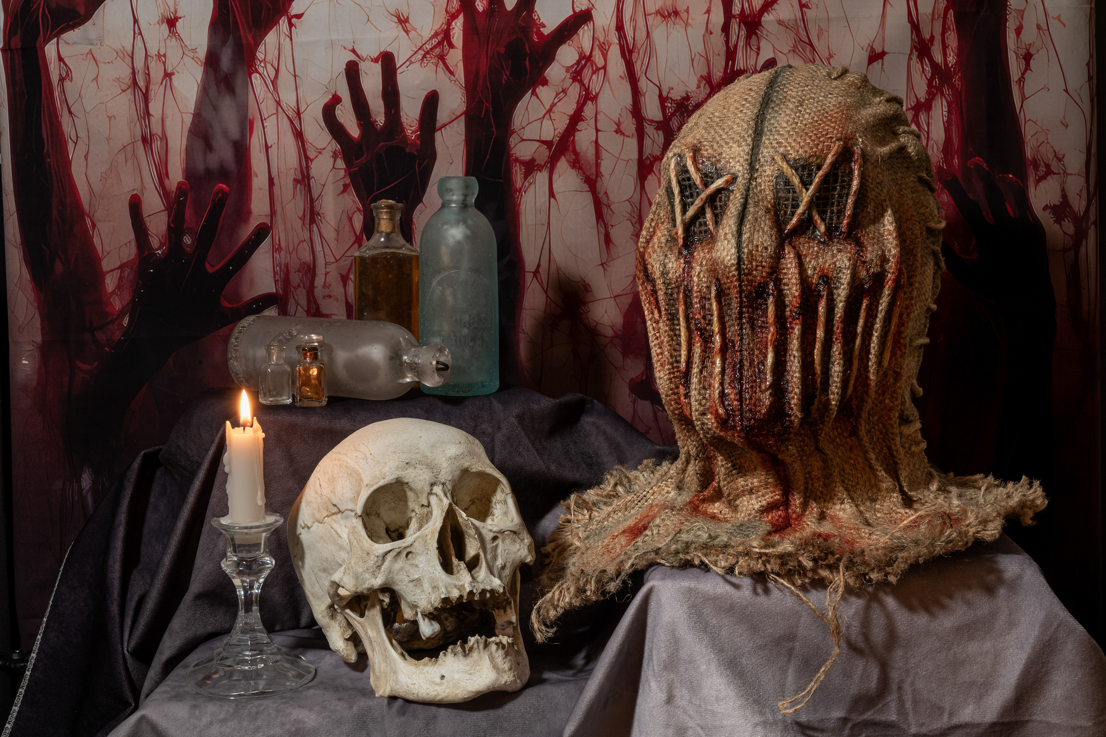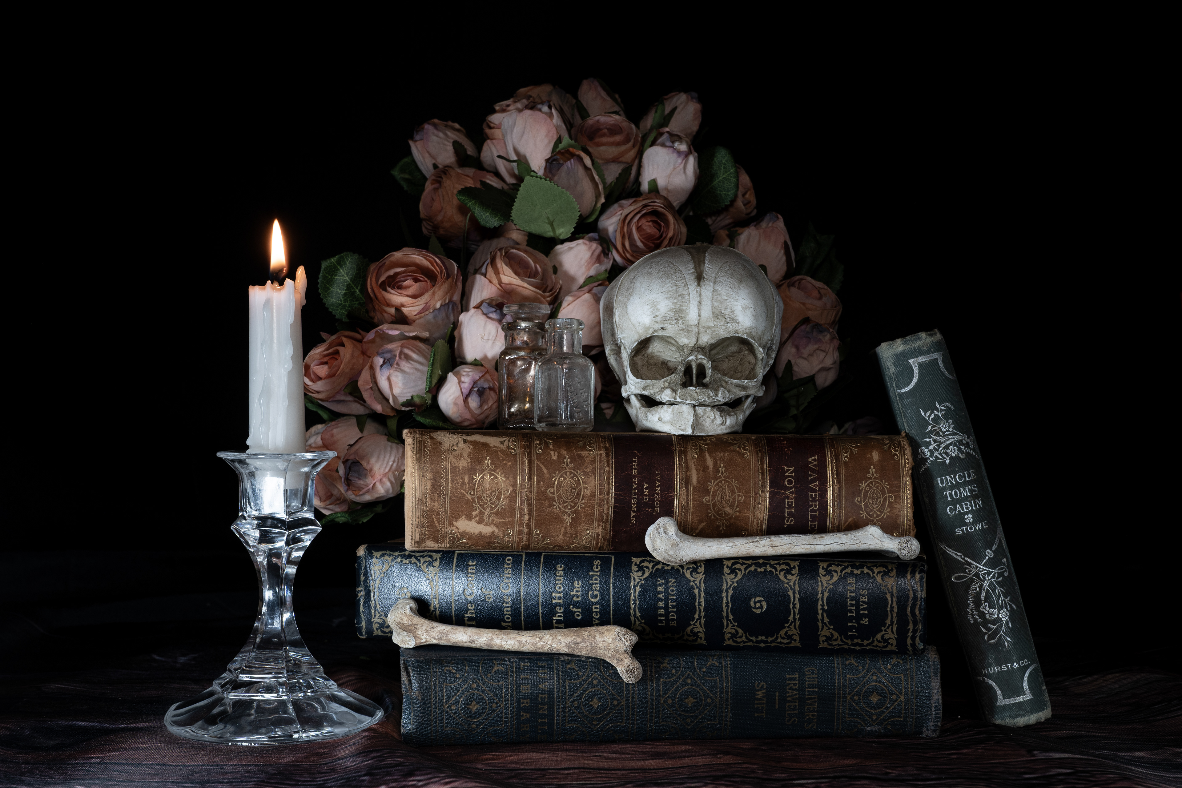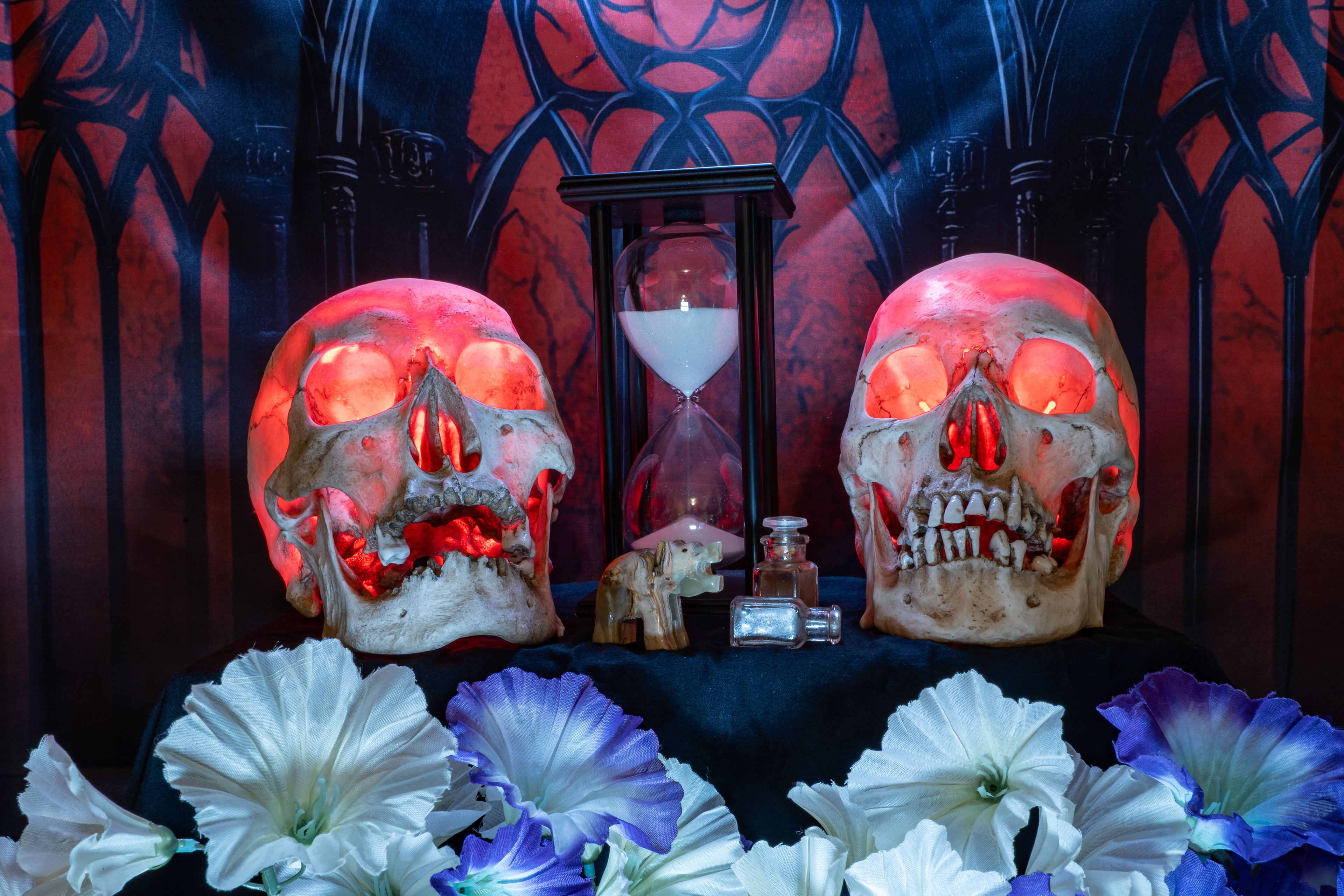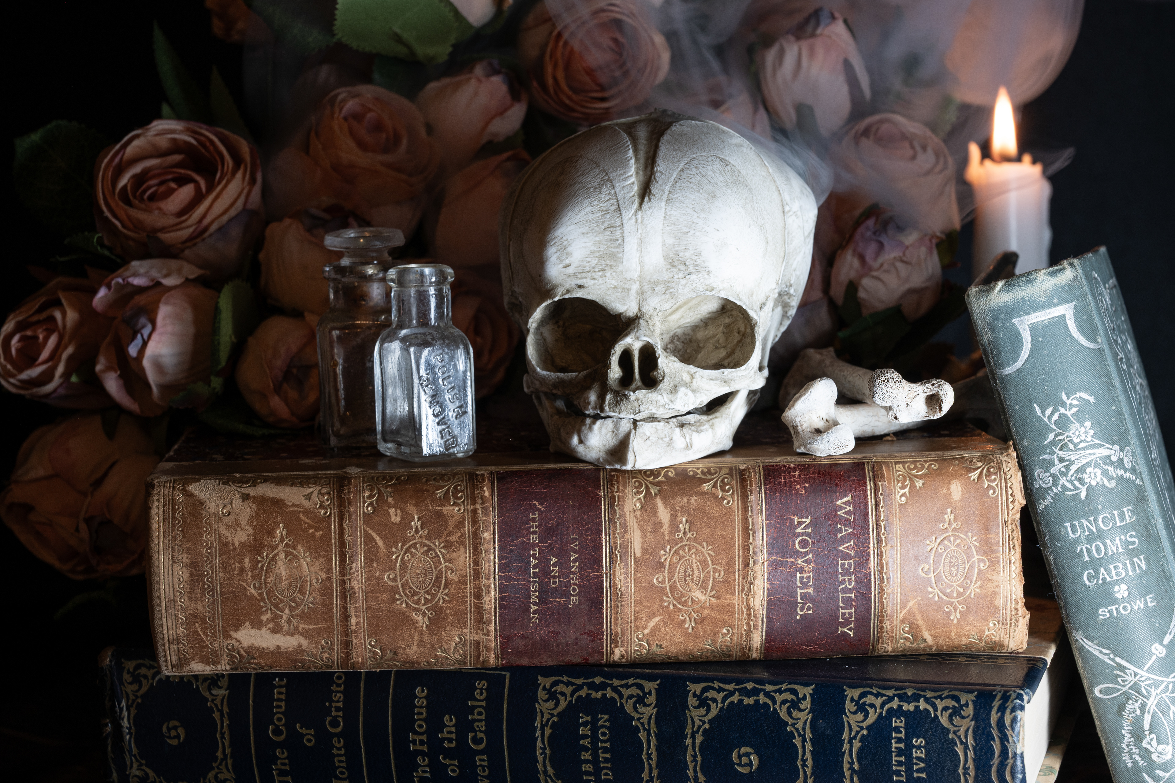 I have wanted to continue creating memento mori-style film photographs, but I haven’t had the time to develop film. Instead, I’ve been using my digital camera to photograph horror-themed props and figures. Working digitally has allowed me to experiment with different lighting techniques and remain creative, even with the limited time I have at night after work.